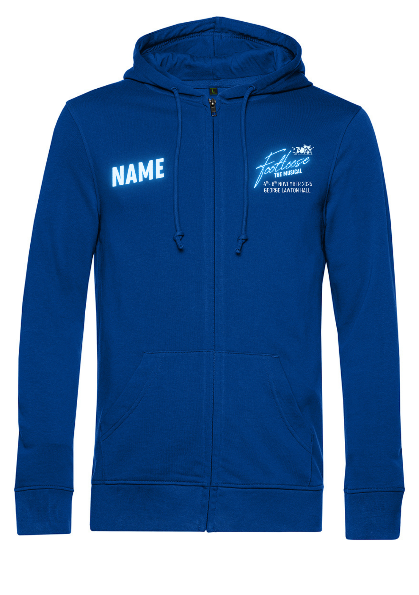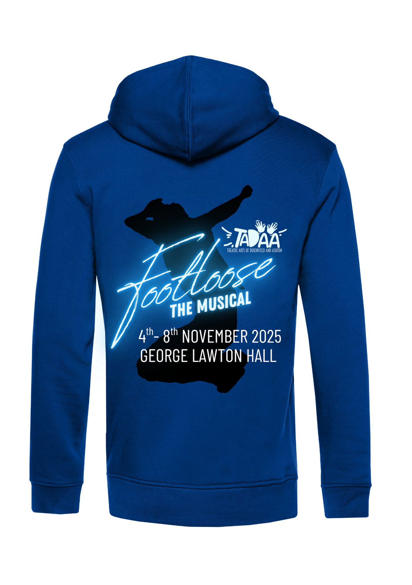 The official and latest branded merch from TADAA - Get your fabulous Footloose Zip Hoody. Personalise with your name too.